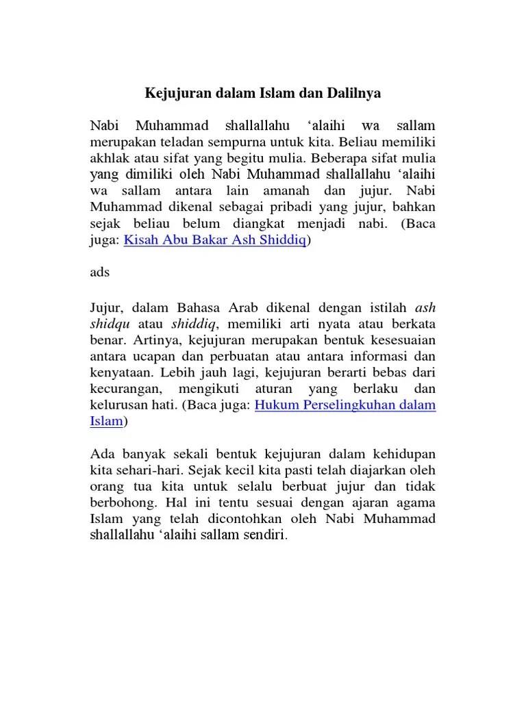 Jujur dalam bahasa arab dikenal dengan istilah shidqu atau shiddiq yang. Dalam bahasa arab, jujur dikenal dengan istilah ash shidqu atau shiddiq. Wajib hukumnya bagi kita untuk selalu berusaha jujur dalam hal apapun baik lisan maupun . Mengutip jurnal shiddiq dalam pandangan quraish shihab tulisan. (1) kesesuaian antara ucapan dan perbuatan .